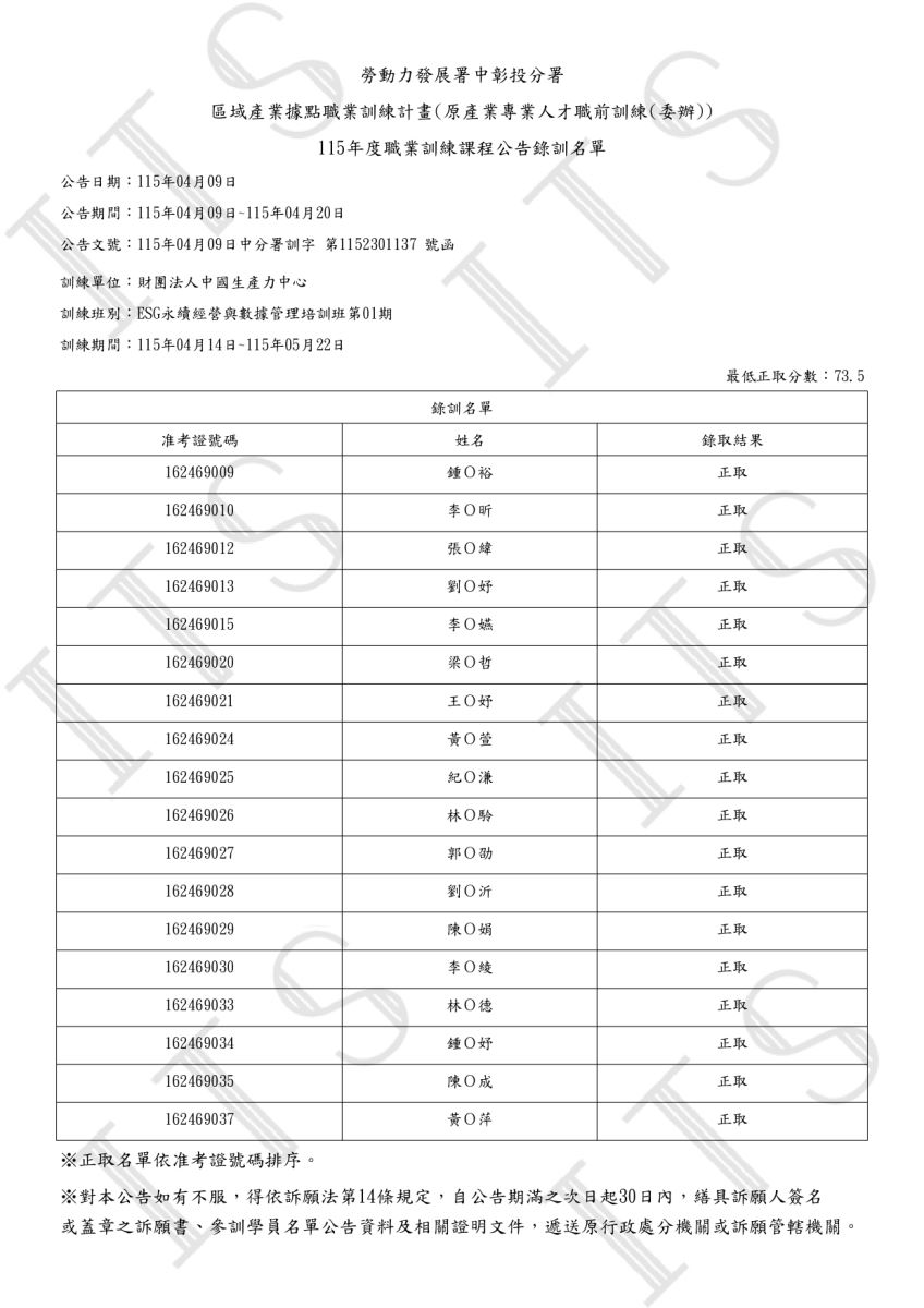 感謝大家熱情報名本次「ESG永續經營與數據管理培訓班」,經過資料審查,錄取名單已正式公布。