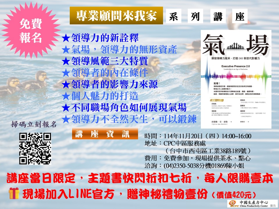 好康一:講座當日限定,主題書「氣場」快閃折扣七折,每人限購壹本
